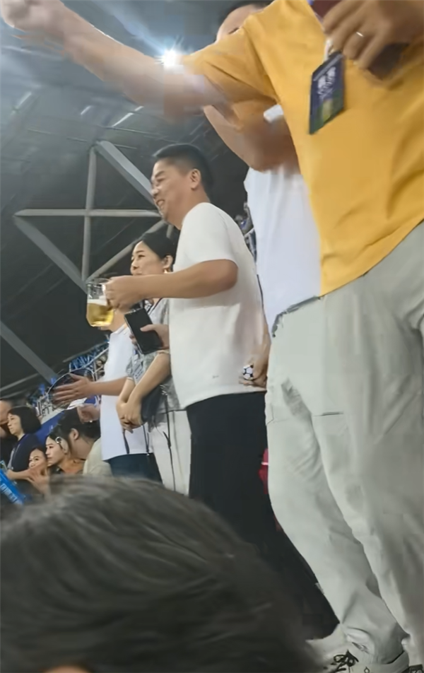 8月30日凌晨,京东集团创始人刘强东手捧啤酒现身比赛现场,